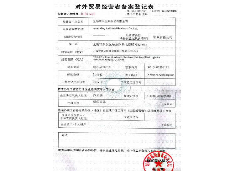 外贸备案登记